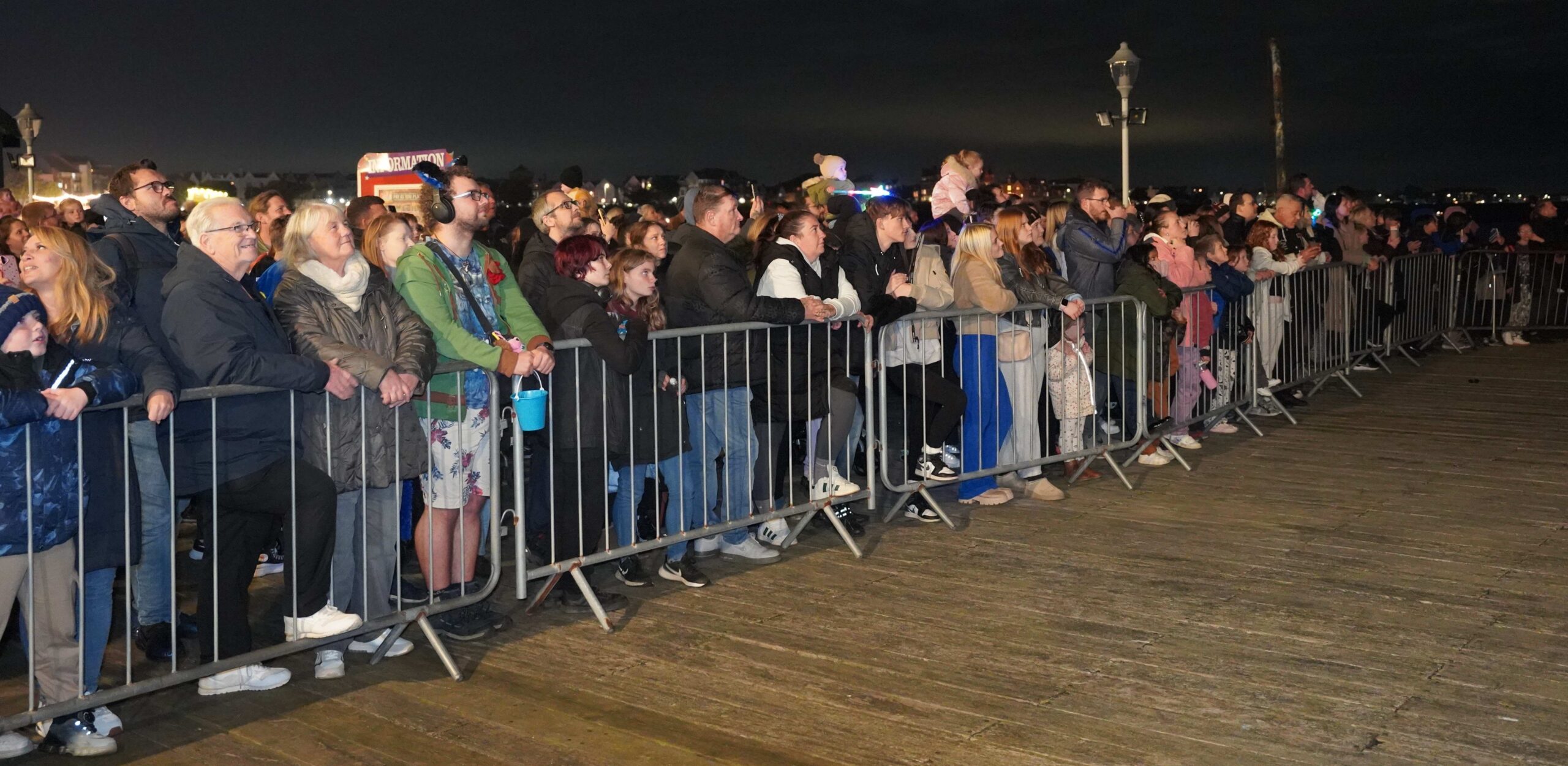 Crowds packed the seaward end of the attraction on both sides of the Jolly Roger theatre to get a close-up view and the fullest experience.